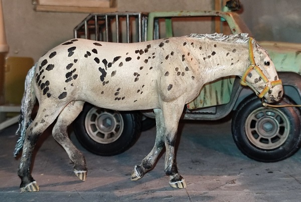 | 2. 7. 23 | Ranchnachrichten Heute gibts nur ein kleines Sammelsurium ![]() bei dem Schietwetter kam man auf den Straßen nur im Schneckentempo voran. Wir besuchten Winnetou und Old Shatterhand ![]() ![]() ![]() Auf Loreenas Hof gibt es zwei neue Pferde, die vom Flohmarkt stammen ![]() Gene erfror dort beinahe bei dem Wind und ich besorgte ihm spontan ne Jacke ![]() Also irgendwie sieht er darin aus wie Shaking Stevens, lol Ansonsten hat Klein-Stormy nun einen Sohn ![]() Und hier noch eine kleine Sneak Preview: Wir werden wieder bei dem virtuellen Hotel des MPV Forums zum Breyerfest mitmachen und dort ein virtuelles Zimmer haben, genaueres wird verlinkt, sobald es soweit ist. Vielleicht gibt es bis dahin auch schon den neuen 3D Mustang, der hier gerade in Arbeit ist, geplant ist er hauptsächlich in H0 Größe ![]() |