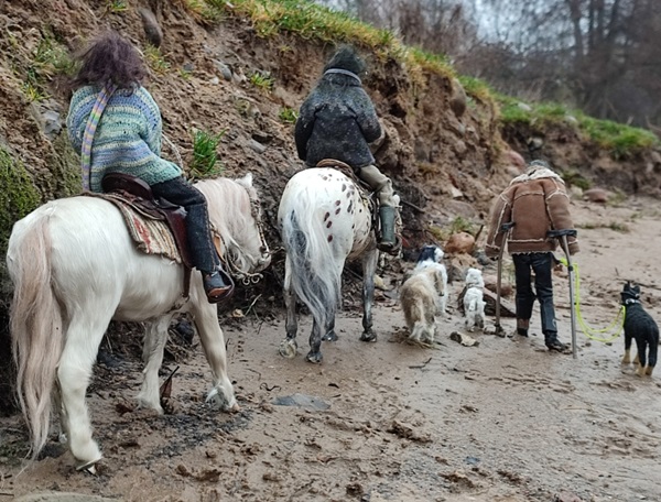 | 12. 6. 23 | Ranchnachrichten![]() Kleiner Morgenausritt, Hamlet guckt etwas traurig, da einsam, aber das wird sich in Kürze ändern, da nun die Herde zu ihm dazukommt ![]() ![]() Ian ritt erstmal die Morgenrunde weiter und schaute ob alles in Ordnung ist ![]() ![]() ![]() Der Bär da ist harmlos, außer für die Bienenstöcke. Und da ist Gene, der spielt gerade mit Wachhund Thyson ![]() Thyson hat ein sehr kräftiges Gebiß ( aus Gummi) und die Stöcke sind knochentrocken und daher brüchig, deswegen hat er erstmal mindestens 4 kaputtgebissen, ehe sie einen zum Tauziehen fanden ![]() ![]() ![]() ![]() (Die neue Fjordstute von Breyer gefällt mir auch in OF sehr gut und ich weiß noch nicht ob ich sie custen werden) ![]() Jetzt kümmern wir uns erstmal um die Schafe ![]() Dank der 4beinigen Helfer konnten wir sie auf die neue Koppel bringen. Allerdings ist die zz ähnlich trocken wie die alte. ![]() |
