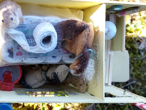 | 21. 4. 23 | Ranchnachrichten![]() Genes Schlafzimmer ist inzwischen fertig tapeziert, mit einer Originaltapete. Gene ging es leider ziemlich schlecht zur Zeit und eigentlich hatte er Bettruhe verordnet gekriegt. Draußen stürmte es, da war es schwer die Frisur hinzukriegen.... ![]() Gene ging dann schließlich zum Frisör , hier ist ja einer in der Nähe ( und das beste, manchmal ist dort ein Minifrisörsalon im Fenster, so niedlich ) ![]() ![]() Gene hatte dann einen Eingriff an seinem Bein und war nun vom Arzt endgültig erstmal zu Bettruhe verdonnert worden, zumal er auch immernoch die Bronchitis hatte, die gerade umgeht. ![]() Sagt mal wer sind eigentlich die drei da drüben hinter dem Glas, die sehen ja aus wie ne kriminelle Vereinigung ![]() Ne gute Nachtgeschichte durfte natürlich auch nicht fehlen ![]() Am nächsten Tag kam ein Paket aus USA ![]() Zum Vorschein kam Schlurfis Bruder "Hartland Patches", ( painted by Lisa Doughman) ![]() ![]() Kleiner Abendspaziergang, Gene durfte allerdings das Bein nicht belasten ![]() Ramon war dann noch ein bißchen bei ihm ![]() ![]() Kurzer Blick in den Garten ![]() Ich glaub, die haben da gerade ein Rankpflanzenproblem, ggg. Sie züchten ja Monsteras und Gurken aufm Dach.. ![]() Außerdem versucht Köttbullar gerade Moosbälle anzubauen, nachdem sie das im Internet gesehen hatte ( das das einer in so klein gemacht hat) |