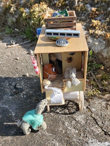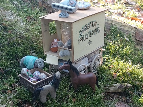 | 10. 4. 23 | Ranchnachrichten![]() Dieses Osterwochenende waren wir viel unterwegs und haben viele Flohmärkte besucht. Leider aber niocht wirklich viel Bilder gemacht. Hier ist aber Gene mit Hund "Peaches" ![]() Zwischendrin war noch Zeit, um an der Osterchallenge der "Mikro Länder" teilzunehmen, es ging um ein Diorama auf einem 5-Centstück ![]() Eignet sich ja auch ganz gut als Osterdeko XD ![]() ![]() ![]() ![]() ![]() So , jetzt aber nichts wie raus, ehe das Wetter bäh wird ![]() ![]() ![]() Kleines Picknick ![]() ![]() Und zum Schluß schauen wir uns noch Loreenas Neuerrungenschaft an. Natürlich braucht sie den eigentlich nicht, denn sie hat ja das WoMo, aber ich hatte genau so einen als Kind, ca 1973 und mich immer gefragt, wie groß der im Massstab eigentlich war, aber nie wieder einen gesehen, bis heute aufm Flohmi und er paßte zu Loreena und co. Leider mußte er daher dann mit. Der Vorhang gehörte damals natürlich nicht dazu, ggg. ![]() ![]() |
