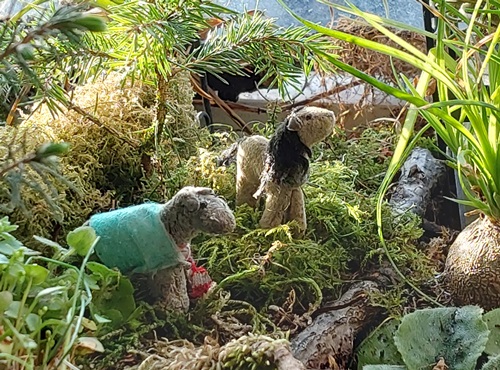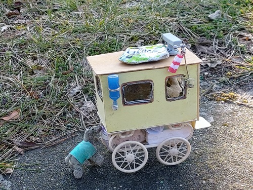 | 28. 3. 23 | Ranchnachrichten![]() Gestern hatten wir noch ein paar Monsteraableger gezüchtet, ( aus Plastikblättern,.die ich auf der Strasse fand) ![]() Und nun reiten wir ein bißchen aus ![]() Hier lag noch etwas Schnee und Dan ließ die Zügel in dem Moment runterfallen. Unterwegs kamen wir auch an dem Zaun vorbei, in dem immer die Schnecken stecken bleiben, ich hab inzwischen glaub ich hunderte da rausgepuhlt. Falls Ihr Schnecken liebt, verwendet keine Zäune aus Kükendraht, in dem kleineren bleiben die Gartenschnecken hängen, im normalgrossen, wie ich mir sagen liess auch die gefleckten Weinbergschnecken ( hier sind die noch nicht heimisch) ![]() Dieser hier konnten wir leider nicht mehr helfen, sie war schon tot ![]() Hier was schöneres ![]() ![]() ![]() ![]() ![]() Gene war danach ziemlich k.o., er ist zz gesundheitlich sehr angeschlagen und legte sich erstmal hin ![]() ![]() ![]() ich hab ihn dann erstmal ein bißchen zugedeckt und Dan spielte auf dem Klavier ![]() ![]() Und auch heute gibts ne Miniaturenbastelei am Abend: eine Dose Naschis |