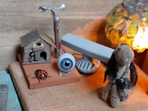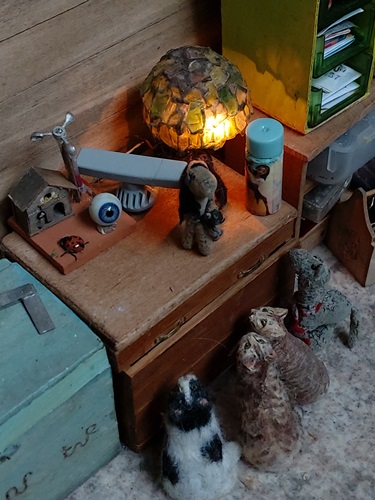 | 28. 2. 23 | Ranchnachrichten![]() Ramon war ein bißchen ausgeritten. ![]() ![]() ![]() ![]() Nanu, wer ist denn da unterwegs? Das ist Bimpe ( Schnecke aus Fimo, mit Häuschen aus dem Garten bei meinen Eltern, dort hab ich auch diesen Wagen aus unseren Kindertagen gefunden. Die Weinbergschnecken spielten damals eine sehr große Rolle bei uns. Alle 2 Jahre gab es auf dem Dorf Schnecken sammeln für die Kinder, die wurden dann verkauft und gegessen. Mein Bruder und ich taten alles mögliche um sie davor zu schützen, zum Beispiel haben wir ihre Häuschen beschriftet, mit Nummern und Namen, in der Hoffnung dass niemand eine beschriftete Schnecke essen würde. Sie hatten zT Fantasienamen, daher auch der seltsame Name dieser Modellschnecke. Und einmal haben wir 75 bereits von Welchen gesammelte Schnecken wieder freigelassen... Das gefundene Häuschen ist vielleicht von einem Nachfahren dieser Schnecken aus Kindertagen. ![]() ![]() Bleiben wir nochmal ein bißchen bei "früher", wir hatten ein Fender Rhodes Piano, an dem ich viele, viele Stunden verbracht hab und jede Menge selbstausgedachter RocknRoll-songs gespielt hab. So eins hab ich nun gebastelt: ![]() ![]() ![]() Es hatte eine Rille wo man Notenblätter reinstellen konnte, aber meist haben wir es doch für irgendwelche kleinen Bilder benutzt, ZB welche von Gene... und man mußte aufpassen das die dann nicht zwischen die Tasten fallen...Ungefähr so: ![]() ![]() Dan hatte bei seinen Konzerten im Herbst übrigens auch eins; ![]() ![]() |