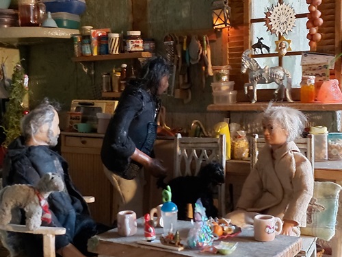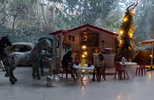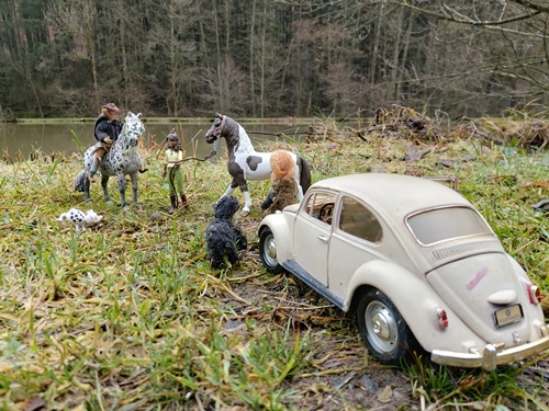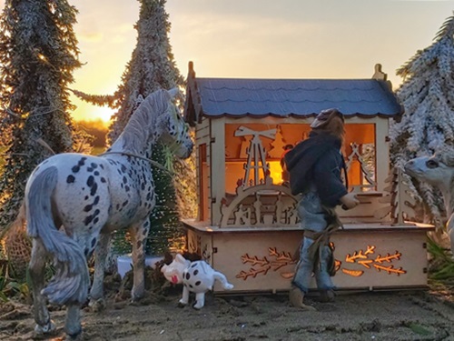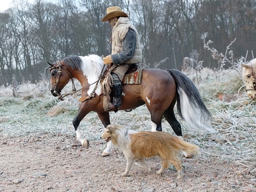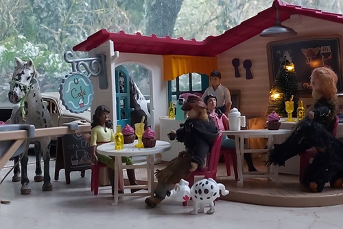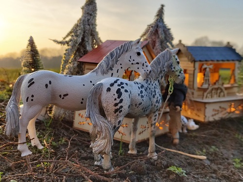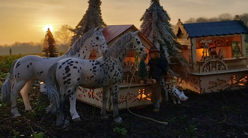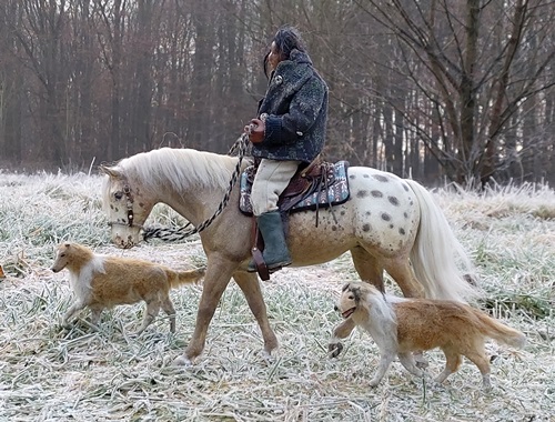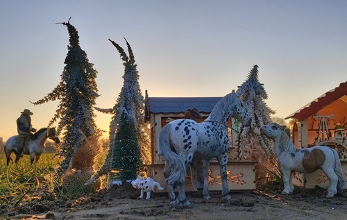 | 18. 1. 23 | Ranchnachrichten![]() Gene ist zz mit Sydney beschäftigt. Irgendwie hat er ein besonderes Händchen für schwierigere Hunde. Ramon kümmert sich ebenfalls um ihn. ![]() LBR St.Anns Gold ist ein Kaffeewasserappy. Und mit ihr gehts nun ins Ellewitt ![]() Dann los ![]() Die Frau hinter der Kamera wollte nochmal drei bestimmte Songs singen, bevor wir damit Pause machen und uns wieder um Dinge wie die Nuit de Krawall kümmern und um Aufnahmen eigner Songs. Volker am Cajon, Rudi am Bass und Mike an der Gitarre waren netterweise die Musiker. ![]() Für Klein-Gene ist nun auch Pause, aber wie man sieht braucht er auch dringend etwas Ruhe ![]() Sie machten noch ne kurze Abendrunde mit Franzi vom Gestüt Riverdale und unterhielten sich über einige "Vorfälle" in der Pferdewelt und merkwürdige agressive Stimmung, die dort verbreitet wird und immer mehr ausufert, so daß sich immer mehr Ranches zurückziehen, was wohl nicht bemerkt wird. Aber eigentlich wollen wir hier diese negative Stimmung nicht auch noch reinholen, also auch schnell weiter mit unserem Kontrastprogramm hier ;) . Am nächsten Tag trainierte Gene wieder mit Sydney. Sie gingen am neuen Hofladen vorbei, der noch im Aufbau ist. Er wird sehr regional beliefert, besonders was die Eier angeht, dort ist die Lieferkette besonders kurz... ![]() Die Hühnchen kriegten natürlich sofort mit, dass Gene da ist, denn der hat immer etwas Futter dabei ![]() Plötzlich stand ein kleiner dicker Wettermustang vor ihnen, er ist neu und für Winterwarnungen zuständig. Und er heißt "Frostbeule"( Frostbite micro mini, sculpted by Rahel Lane) ![]() Er warnte vor einem Schneesturm namens Ingo, bei dem aber noch nicht bekannt ist, ob er Coyote Creek erreichen wird ![]() ![]() Als nächstes gingen sie nach der Cobraherde schauen, die etwas weiter ist ![]() ![]() Und da - nur wenige Meter weiter- sind wir auch schon beim Eierlieferanten, wie gesagt ist die Lieferkette zum Hofladen wirklich kurz ![]() |