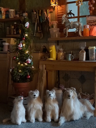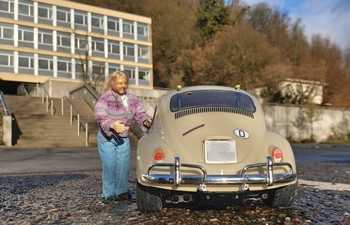 | 6. 1. 23 | Ranchnachrichten Ein kleines Sammelsurium: Heute werfen wir mal kurz einen Blick in den "Kuhstall" den ihr ja schon kennt und treffen Chester am Klavier und Lorraine, die 1981 entstand und Genes einen Hund darstellte. Und die aus Kreide geschnitzten Büsten ggg ![]() Lorraine kam dann mit zu Klein Gene, der sie erstmal knuddelte ( wie der echte Gene auf dem Bild, was als Vorlage damals diente). Wie sie/ er in echt hieß, wissen wir nicht, den Namen hatte sie daher dann von einem Rockabilly song. ![]() Und nun gehts ne kleine Runde drehen ![]() ![]() ![]() Inzwischen sind wir wieder zuhause und es gibt noch ein Tierchen vorzustellen, von dem wir nicht genau wissen, ob es ein Pony, Mustang oder Gurke ist, es heißt Shawnee ![]() und es frißt gerne Rosenkohl, ggg ![]() |